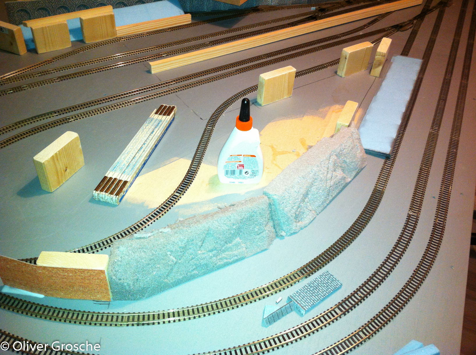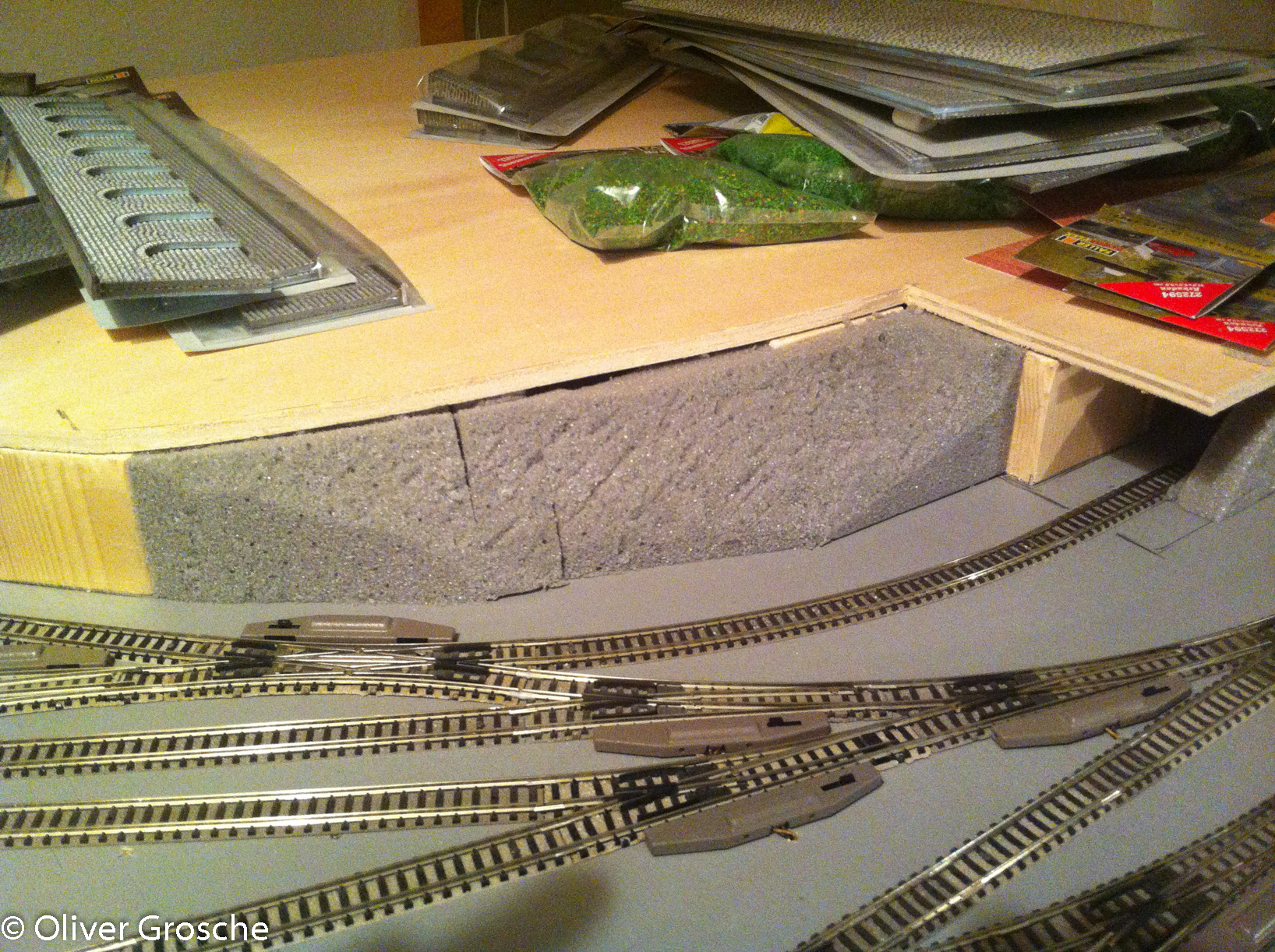 Langsam geht es an die Landschaftsgestaltung. Ich habe an zwei Stellen eine Böschung/Felsen mit Steckschaum für Blumengestecke vorbereitet. Die Anlage an den […]