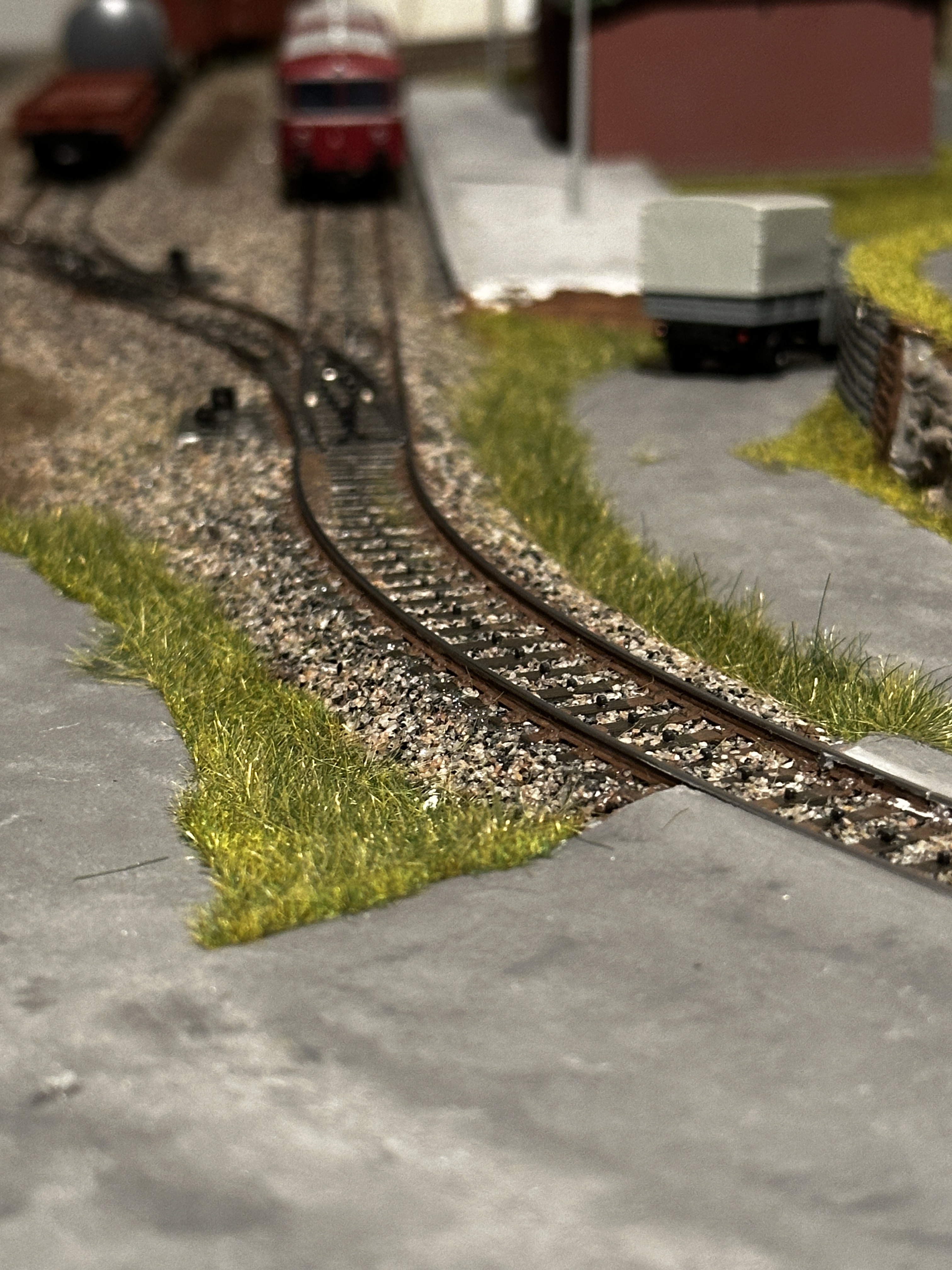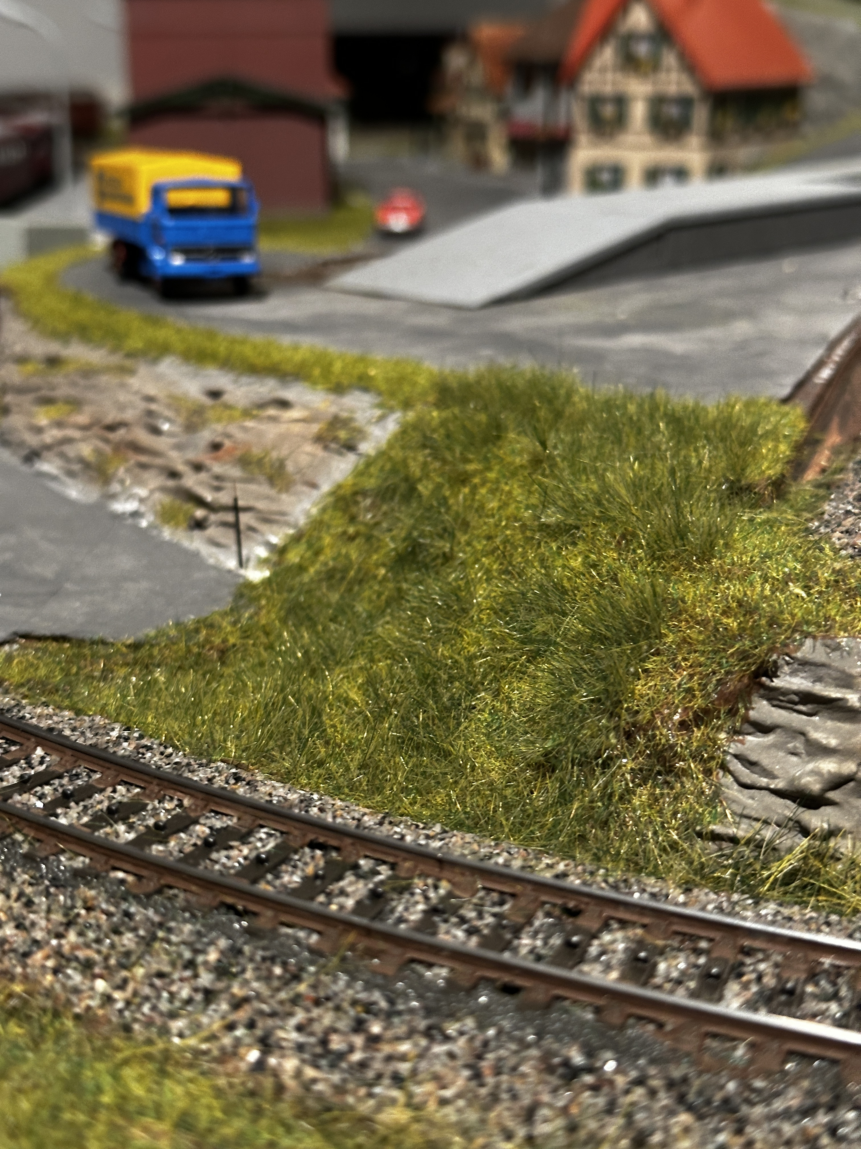 Ich habe begonnen, die nächsten Begrünungsdetails zu machen . Leider bin ich nicht so weit gekommen, da ich mit dem Elektrostaten, eine Laterne in der nähe der zu bearbeitenden Stelle berührt habe. Es gab einen kleinen Knall, genau so als wenn man nach Beendigung der Arbeiten, den Elektrostaten entlädt. Vorsichtshalber habe ich nachgeschaut, ob was kaputt gegangen ist, dem auch so war… 🤦🏻♂️ Drei Hausbeleuchtungen und mehrere Laternen (ingesamt 9 Stück) hatten den Betrieb eingestellt. Genau wie der zugehörige Schaltdecoder, der auch nicht mehr funktionierte und so heiß wurde das der Heißkleber der ihn an seinem Platz hielt wieder flüssig wurde… 🙄